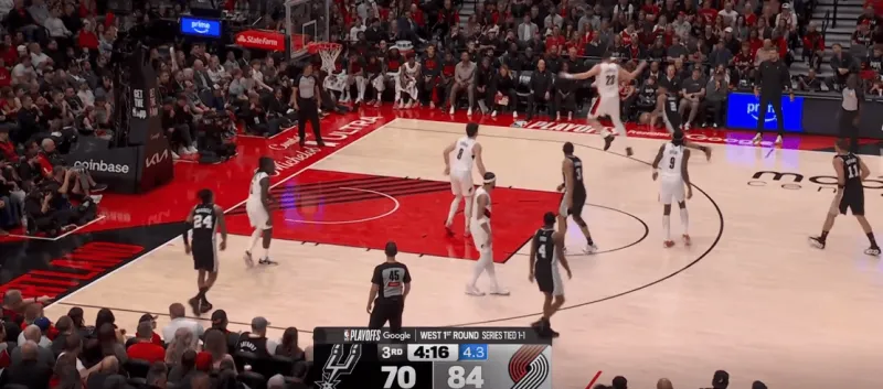 同样,在队友持球突破未果时,哈珀迅速向外线兜出重新落位,这一次惩罚了卡马拉的提前收缩,接球快速出手命中三分: